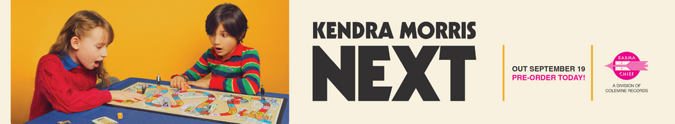 A concept album in reverse, Next ties Kendra’s cast of characters (including her band: guitarist Supremo “Premo” Massiv, bassist Monti Miramonti, and drummer Chauncey Yearwood) to a vintage board game in the spirit of Milton Bradley’s finest retro dice-rolling moments. Travel along Next’s block-to-block journey, and this universe reveals itself as a mosaic of corals, creams, and pale lilac tiles. You can hear the sonic palette resonate with Morris’s influences and inspirations. Decades of New York sounds and voices bend and blend at the seams of these tracks—a world where the Brill Building and Warhol’s Factory thrive on the same block while Blondie and the Frightnrs explore rocksteady sounds. Doo-wop and boom-bap soundtrack a UHF network’s worth of cut-and-paste stylings, all the while paced by Morris, an artist equally at home behind the lens as she is in front of a microphone.